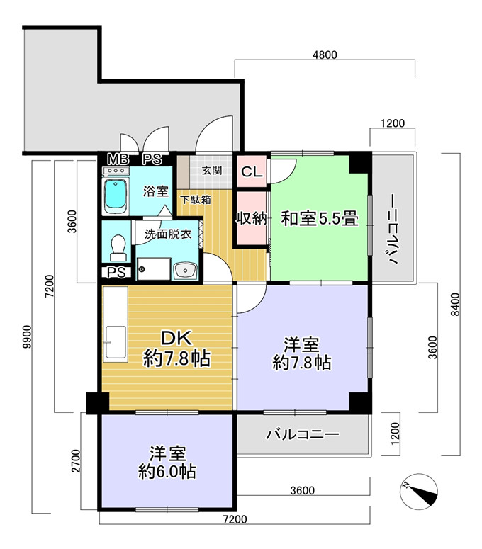 | 建物/間取内訳 | 3DK DK7.8帖 和室約5.5畳 洋室7.8帖 6帖 |